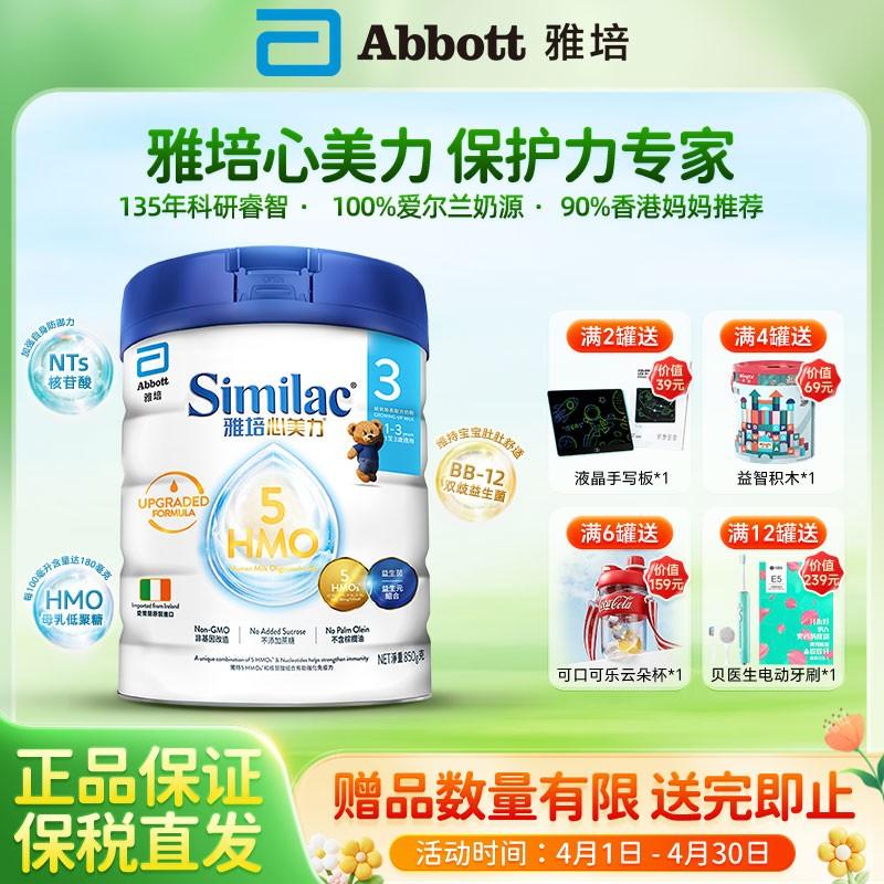 保税直供 【超值满赠】品牌直供-雅培similac港版心美力5HMO婴幼儿奶粉3段 850g